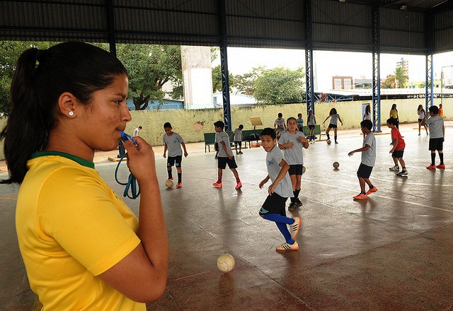 Consequentemente, somente 17,7% dos alunos da rede pública frequentavam escolas com ambiente mais completo para a prática de esporte (presença de quadra, material esportivo e vestiário simultaneamente). Na rede privada esse percentual era de 66,2%.