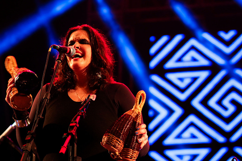 Nesse ínterim, as batidas do coco, as rodas de ciranda, os rituais de candomblé e as forças do maracatu tomavam conta do salão. A performance ritual se concretizava diante de nossos olhos e a cada música, no “estreito espaço entre carne e vísceras”, abríamos “os olhos e vimos do que somos feitos” (Alessandra Leão). Submersos em uma longa empreitada investigativa sobre práticas populares e os sujeitos que formulam essas subjetividades, Caçapa e Alessandra pinçam sons, linguagens e gestos desse universo para acalentar corações. E avisam
