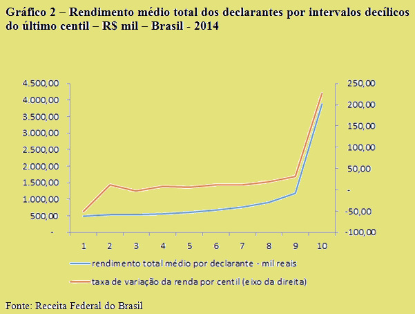 Os dados acima explicitam que a desigualdade no Brasil é maior do que se imaginava, com uma discrepância grande daqueles declarantes que figuram entre o 1%, o que corresponde a 0,13% mais ricos da população total. Ressalta-se ainda que esses declarantes possuem expressivos rendimentos isentos de impostos, ou seja, lucros e dividendos.
