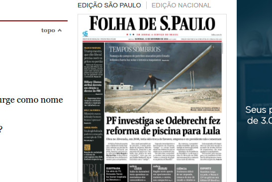 A Polícia Federal investiga suspeitas de que a Odebrecht fez uma reforma na piscina do Palácio da Alvorada durante o segundo mandato do ex-presidente Luiz Inácio Lula da Silva sem ter contrato com o governo e sem que a obra tivesse registro público”, diz o texto. “Se as novas suspeitas forem confirmadas, seria uma evidência de que o ex-presidente recebeu favores também no exercício do mandato, quando os negócios das empreiteiras receberam impulso do governo no Brasil e no exterior.