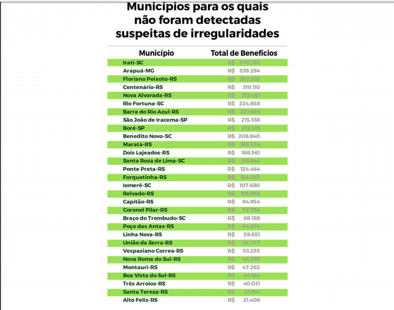 Seria importante um levantamento de práticas desses municípios para poder talvez ser instituída uma prática padrão. Apesar de haver indícios de muita corrupção no Rio Grande do Sul, com 25 mil empresários recebendo o Bolsa Família, além de 9,5 mil servidores públicos, é o estado que tem o maior número de cidades sem indício de corrupção. Quais as práticas desses municípios?