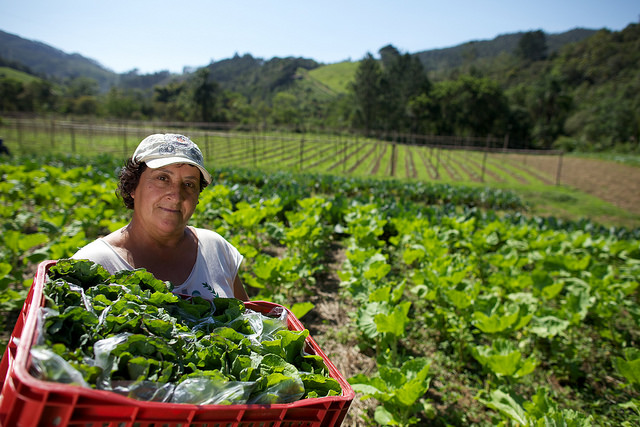 A agricultora Ana Maria Azevedo dos Santos, 50 anos, produz legumes e verduras orgânicos há mais de dois anos para fins comerciais. A propriedade, localizada em Pedro do Rio, na região serrana do Rio de Janeiro, é da família, mas está no nome do irmão, que é seu sócio.