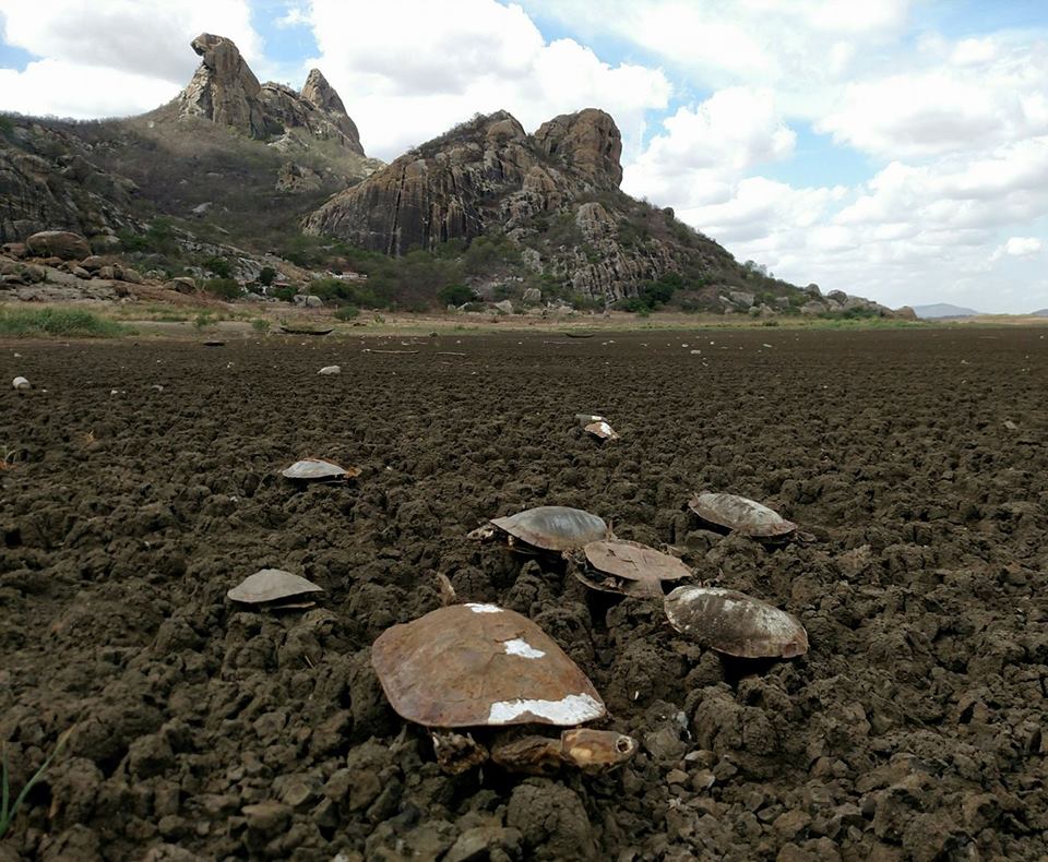O Açude do Cedro, que banha os pés da famosa Pedra da Galinha Choca, em Quixadá – CE, está 100% seco. Nenhuma gota d’água. Meus alunos da Universidade Estadual do Ceará me atentaram para a imensa quantidade de cágados mortos no local e, quando lá cheguei, decidi que deveríamos urgentemente começar uma pesquisa para avaliar o problema.
