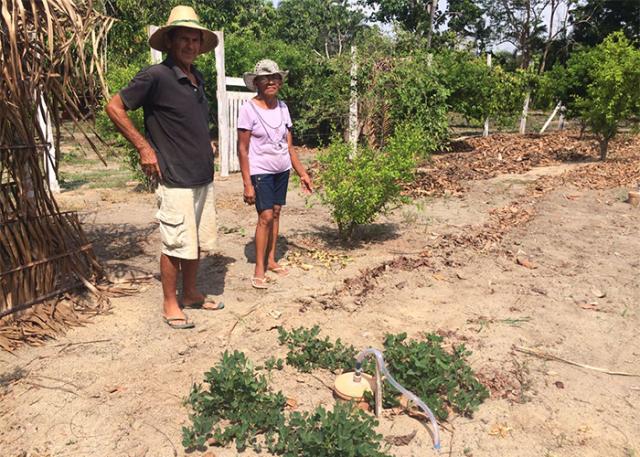 Com apoio da Emater do Pará, a pesquisadora instalou o projeto IrrigaPote na propriedade de dona Maria Cinira e João da Rocha. O sítio do casal está em processo de transição agroecológica e comercializa frutas e hortaliças em uma feira semanal de produção orgânica em Santarém. Dona Cinira contou que trabalha como agricultora há mais de 30 anos e que nos últimos anos vinha perdendo dinheiro e produção com a seca. “Não temos poço na comunidade e sofremos com a falta de água”, comentou a agricultora.
