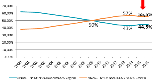Dos 3 milhões de partos feitos no Brasil no período, 55,5% foram cesáreas e 44,5%, partos normais.