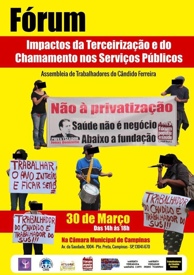 De acordo com os organizadores, Campinas vem passando por um processo de terceirização em várias áreas, como saúde, assistência social e educação. O que sucateia o atendimento a população e as condições de trabalho dos profissionais.