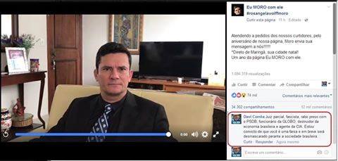 Agora, o juiz de Curitiba postou um vídeo na internet em que diz: “sabendo que nós contávamos com o apoio da grande maioria, talvez a totalidade da população” e foi surpreendido com a reação negativa. O vídeo recebeu uma enxurrada de críticas. O juiz chegou a ser chamado de fascista (imagem acima) e em muitas postagens foi desmascarada sua parcialidade. (Veja texto).