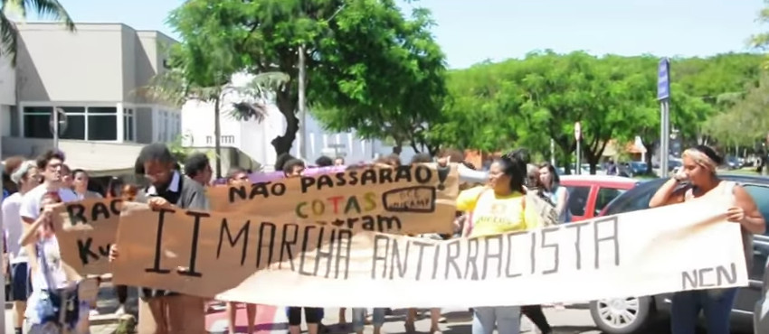 A marcha começou no IFCH (Instituto de Filosofia e Ciências Humanas) com o repúdio a provocações raciais no campus. Um cartaz colocado na Unicamp continha imagem de uma pessoa encapuzada, com frase em inglês: “The KKK wants you”, em referência ao grupo de racistas e assassinos dos EUA.