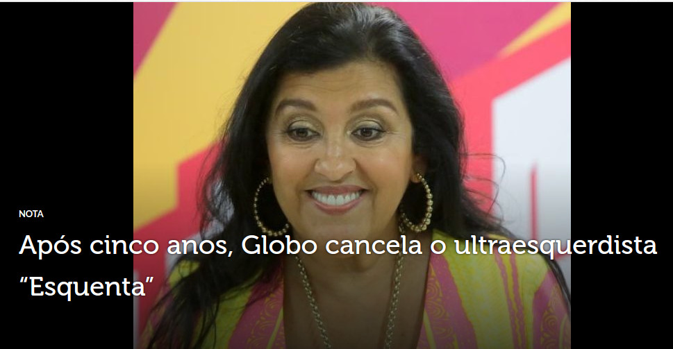 Contudo, no fim de 2016, quando veio a notícia de que, após 5 anos no ar, o “Esquenta!” seria então cancelado, houve uma efusiva comemoração por parte da direita, como foi o caso do MBL, o qual chegou ao ponto de declarar em suas publicações que um “programa ultra-esquerdista (sic) foi cancelado” e que a “a extrema-esquerda (sic) perdeu um espaço importante de propaganda” (veja mais sobre este episódio aqui).