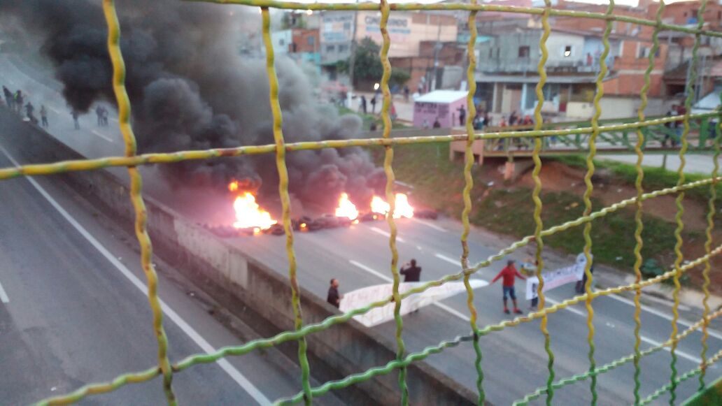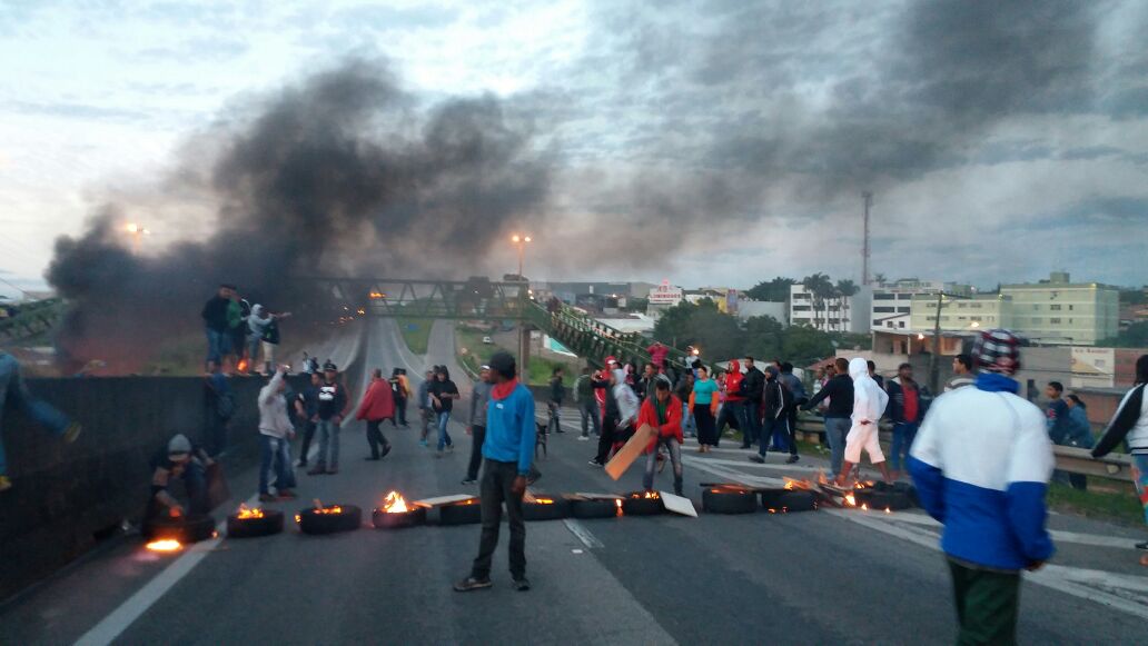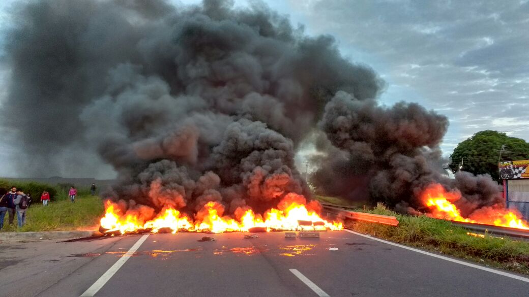 A Avenida Santos Dumont, em Campinas, que liga a cidade ao aeroporto de Viracopos e a Indaiatuba, está bloqueada por piquetes esta manhã.