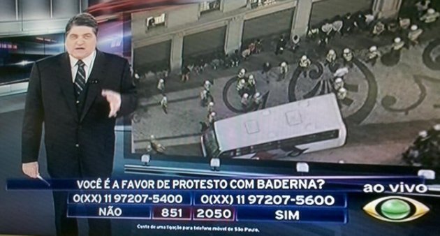 No vídeo, Datena fez uma enquete durante as manifestações de 2013 em que, revoltada, a população quebrou lojas de automóveis e bancos.