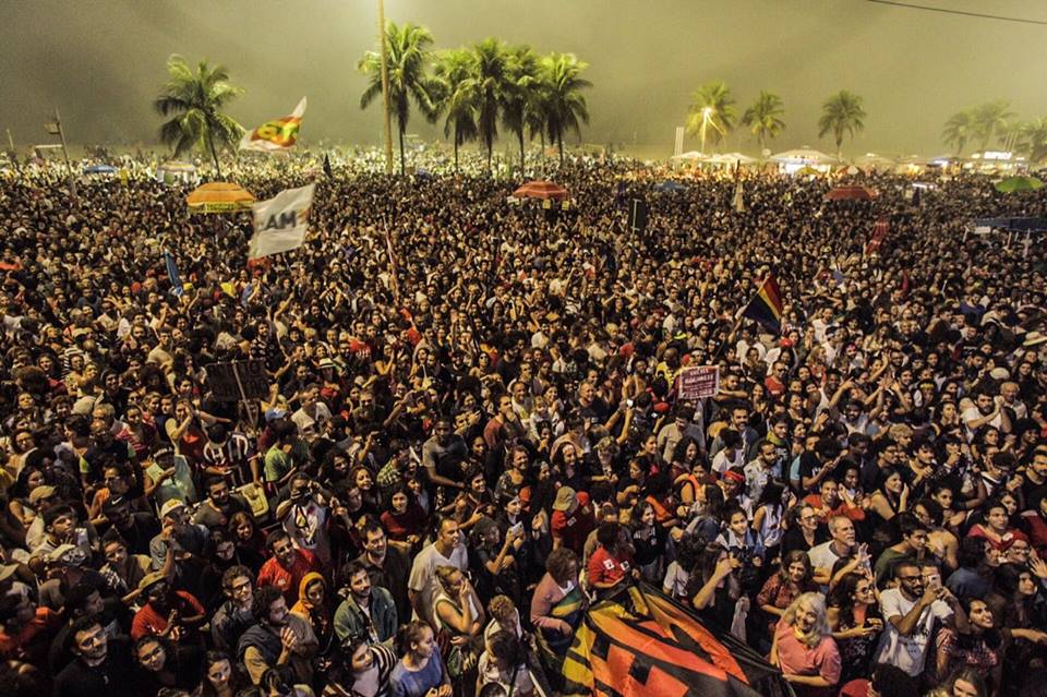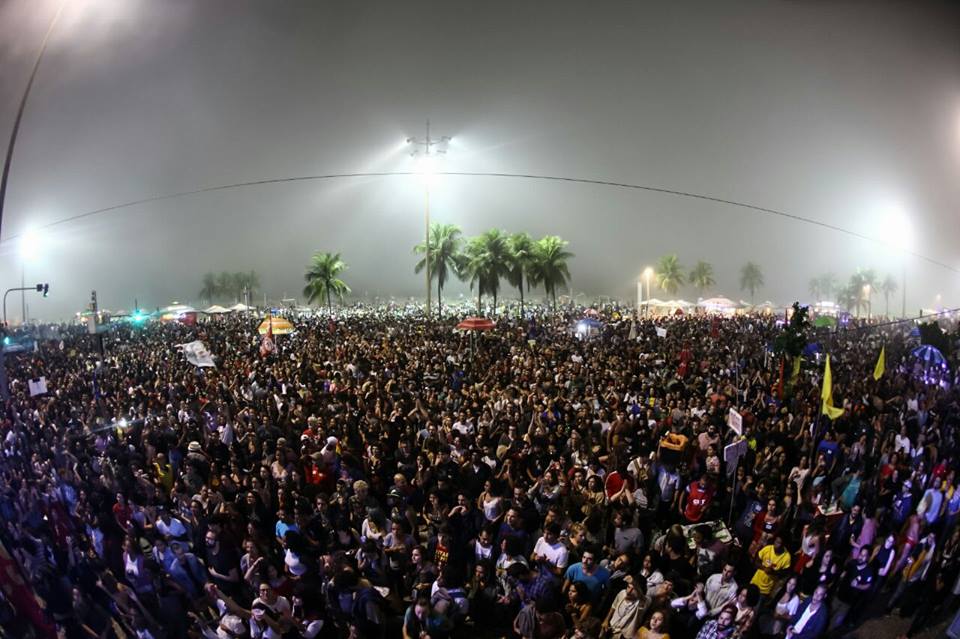 Uma histórica e mega manifestação acontece agora na praia de Copacabana, no Rio de Janeiro.