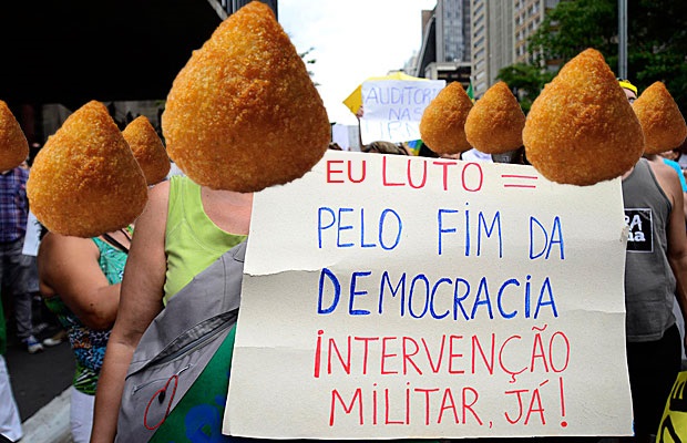 13) -“Não bato panelas contra partido A ou B, mas contra a corrupção!” – (tem que bater uma panela de pressão na própria cabeça). (Pedro Gomes, adaptado por Samantha Costa)