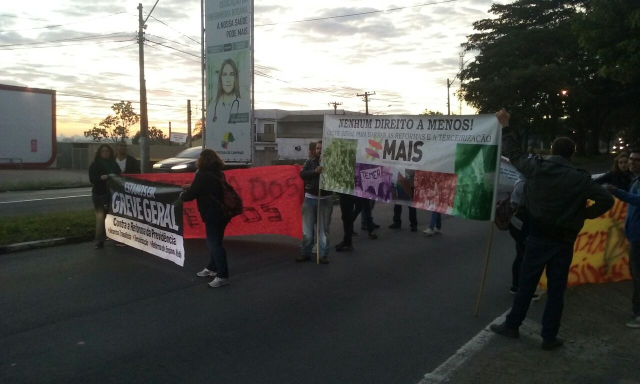 Manifestantes fizeram vários bloqueios na manhã desta sexta-feira, 30, em avenidas de Campinas. A paralisação foi convocada pelas centrais sindicais contra a Reforma da Previdência e Reforma Trabalhista, além do impeachment de Michel Temer.