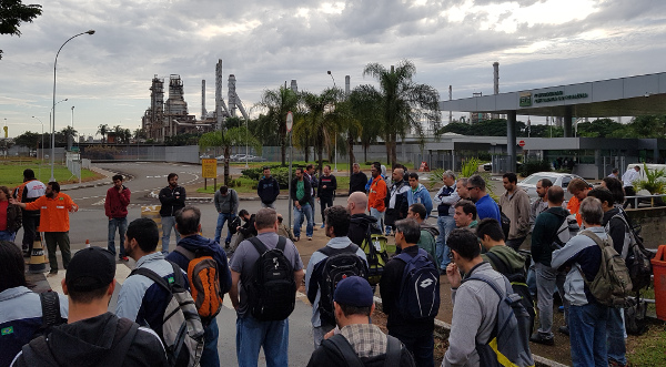 Os petroleiros iniciaram uma paralisação por tempo indeterminado contra a redução de trabalhadores da Replan nesta sexta-feira, 30 de junho, no mesmo dia em que acontece a Greve Geral.