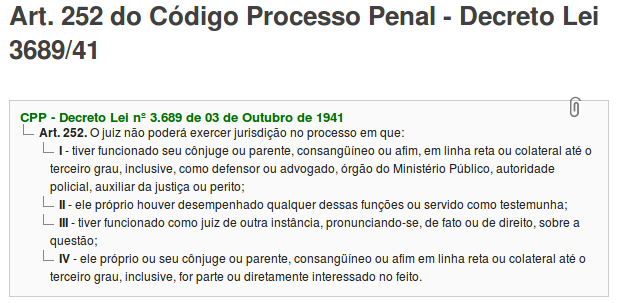 Veja na imagem as condições em que o juiz é impedido de julgar atualmente. Mas as mudanças sociais, os avanços democráticos e a explícita atuação política de Gilmar Mendes, Sérgio Moro e outros existem mudanças urgentes no artigo.