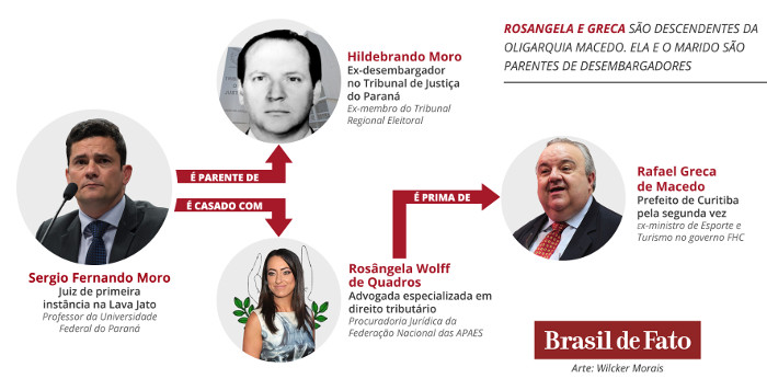 O juiz Moro é filho de um professor universitário, mas também é parente de um desembargador já falecido, o Hildebrando Moro. A mulher do Moro, a Rosângela [Wolff], é advogada e prima do Rafael Greca de Macedo [prefeito de Curitiba]. Ela pertence a essa importante família política e jurídica do Paraná, que é o grande clã Macedo, e também é parente de dois desembargadores.