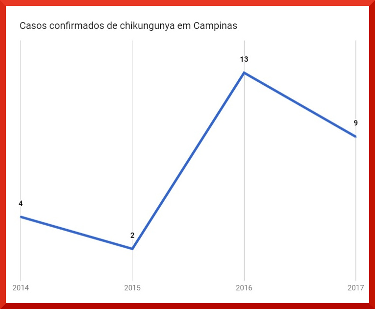 A diretora da Vigilância em Saúde, Andrea Von Zuben, explicou que os sintomas da chikungunya são parecidos com os da dengue e zika, mas são bem mais intensos como febre, manchas vermelhas na pele, coceira, dor de cabeça e fortes dores nas articulações.
