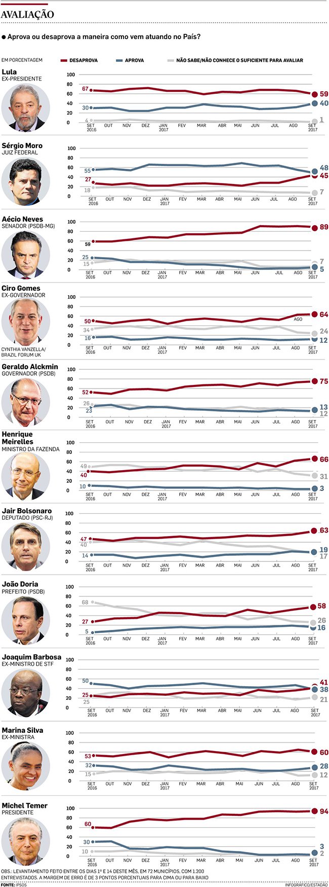 As impressões da população sobre Lula, Moro e outras personalidades foram levantadas entre os dias 1 e 14 de setembro, ou seja, antes e depois do depoimento de Antonio Palocci, ex-ministro da Fazenda de Lula e da Casa Civil de Dilma Rousseff.