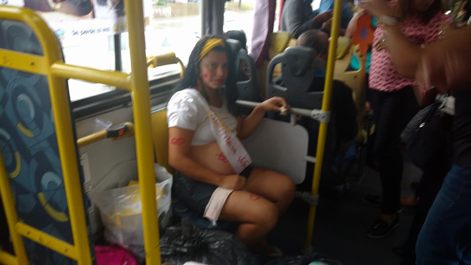 No meio da Avenida Brasil, o ônibus pára! Não era para parar, se trata de um ônibus expresso. Começa de fato a comemoração quando entra, no meio da pista central, a gestante homenageada, acompanhada de sua mãe e de sua filha. Gritos. Choros. Alegrias! Ovações!