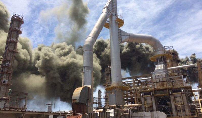 Uma nuvem formada pela mistura de gasolina, GLP e óleo diesel vaporizados, com alto grau de explosividade, foi lançada pelas chaminés da refinaria. A nuvem escura se dissipava no ar há quase 30 minutos, quando a empresa tocou o alarme de evacuação das unidades.