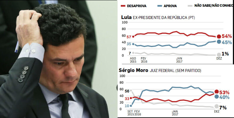 No levantamento de dezembro de 2017, a boca do jacaré já engoliu o juiz da Lava Jato. A maioria da população brasileira o desaprova. São 53% de reprovação e 40% de aprovação. As revelações de Tacla Duran na CPI da JBS, apesar de escondida pela grande mídia, talvez tenha já causado estrago na imagem do juiz de Curitiba.