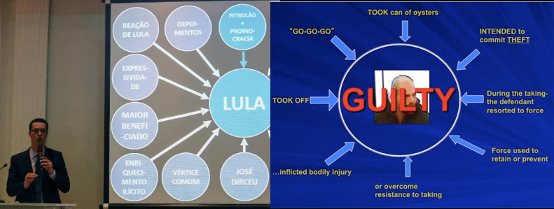 Segundo a defesa do ex-presidente,a estrutura da apresentação feita pela Força Tarefa foi fielmente copiada de um processo que tramitou pela Justiça dos Estados Unidos, tendo o membro local do Ministério Público utilizado da mesma estratégia para postular a condenação do acusado.
