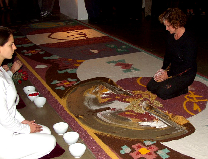 CS: Sim, tinha. Aquele “menino”, artista performer… o Felipe Espíndola e a Sara Pananby. Tinham várias pessoas, eles estavam começando na época também. Comecei a trabalhar mais coletivamente na produção dos tapetes. Fiquei até 2005 com o grupo de São Paulo, e tive que sair porque a curadora tinha uma certa resistência com a performance. A partir desse momento senti que já podia caminhar e de que não precisava de uma orientação tão próxima e sistemática.