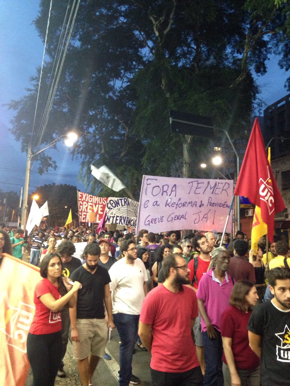Manifestantes fizeram um protesto no final da tarde de hoje na região central de Campinas contra a reforma da Previdência Social, proposta por Michel Temer.