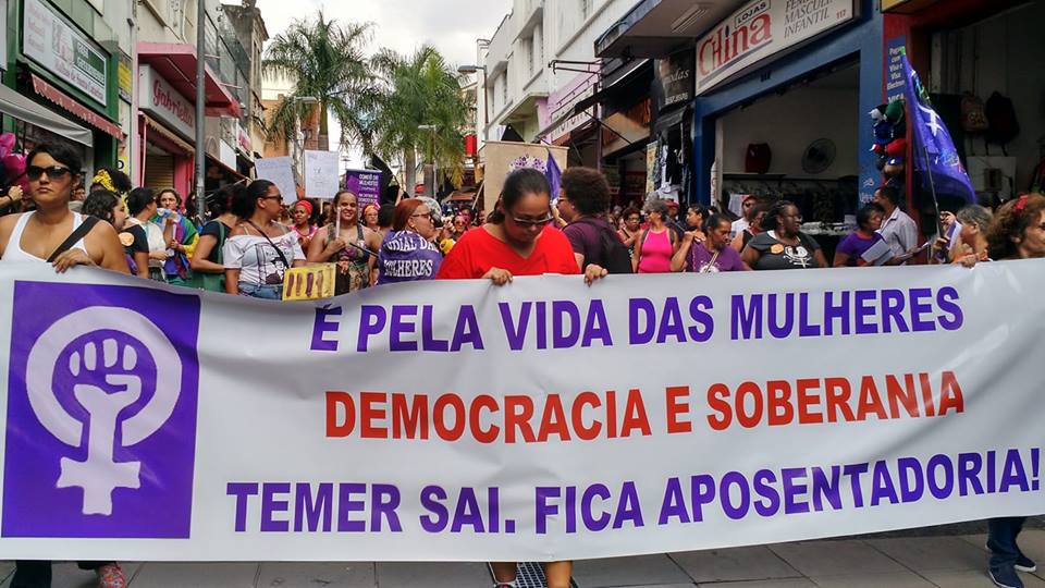 No Brasil, sacudido pelo golpe, experimentamos o assalto aos direitos trabalhistas, a entrega do patrimônio nacional, as muitas arbitrariedades e violências por parte do Estado. Anulando mais de 54 milhões de votos da Primeira Mulher a presidir o Brasil, o ataque se concentrou principalmente contra as mulheres: convém explicitar que o golpe é patriarcal. Nós, mulheres, estamos sendo as mais prejudicadas. Por isso, todos os dias, em algum lugar do Brasil, mulheres têm se manifestado denunciando o desmonte da Constituição e a geração de milhões de desempregadas/os.