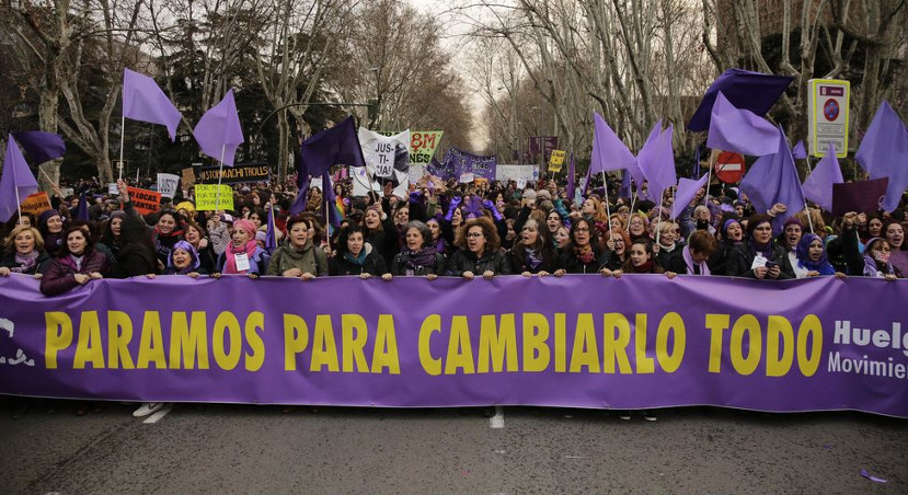 Neste ano, o 8 de Março foi especialmente marcante. Pelo menos em 30 países mulheres convocaram uma Greve feminista, um paro de mujeres, uma huelga feminista. O resultado foi excepcionalmente surpreendente na Espanha. Cerca de 5,2 milhões de mulheres aderiram à greve e participaram das manifestações. A imensa Praça Maior de Madrid ficou literalmente tomada pela multidão de mulheres, cerca de 2 milhões. Também em Saragoza, na Catalunha, no País Basco. . . marcharam contra a exposição midiática que transforma mulheres em objeto; marcharam contra a exploração sexual pela prostituição.