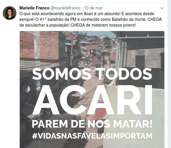 O brutal assassinato da vereadora Marielle Franco, do PSOL, é um crime que atinge diretamente a cidadania e a democracia. Marielle foi executada no momento em que vinha denunciando os abusos de autoridade e a violência contra moradores das favelas e bairros pobres da cidade, por parte de integrantes de um batalhão da Polícia Militar.