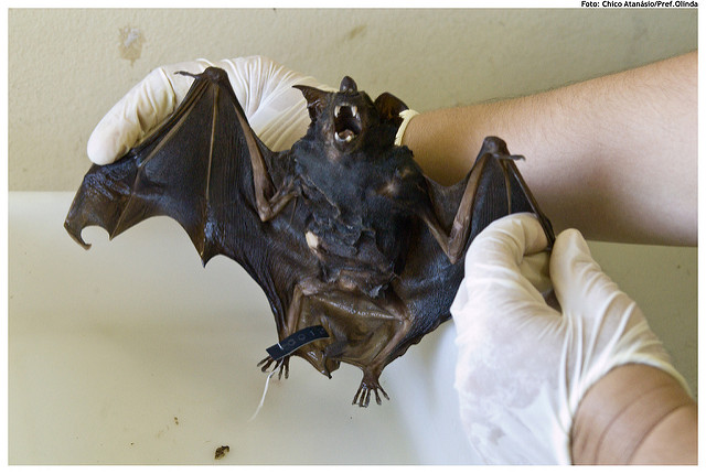 É considerado comportamento estranho os morcegos que voam durante o dia, que ficam pendurados em locais com a incidência direta de luz solar ou que estejam caídos no chão. A orientação da Secretaria de Saúde é nunca tocar em um morcego.