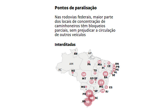 Segundo o colunista, funcionários de uma empresa constataram que os bloqueios estão dominados por milicianos armados que ameaçam caminhoneiros e os impedem de sair com os caminhões.