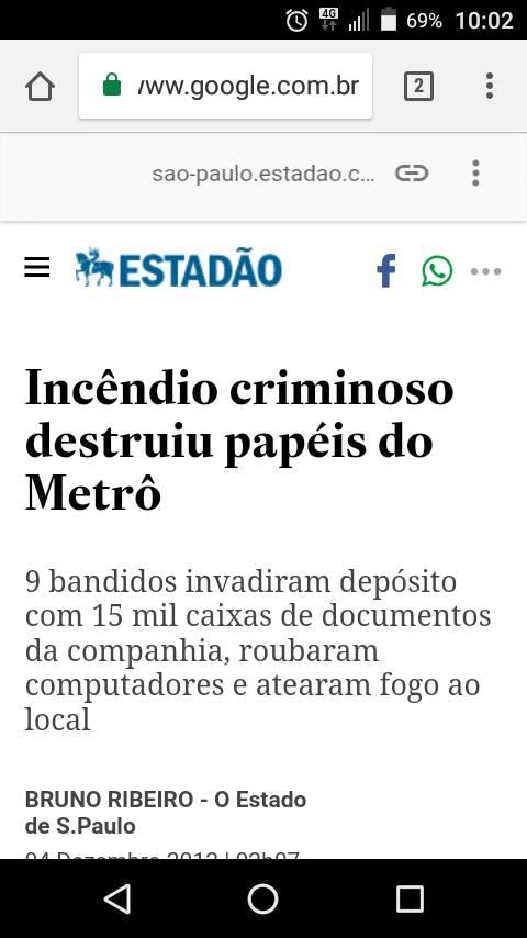 Veja relato de notícia da época: “As 15 mil caixas de documentos que o Metrô de São Paulo perdeu em junho foram queimadas durante um incêndio criminoso. Na ação, um grupo de nove pessoas armadas invadiu a empresa que armazenava os papéis e roubou computadores. Antes de deixarem a empresa, os ladrões atearam fogo ao depósito.