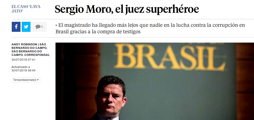 O jornal espanhol La Vanguardia publicou uma matéria nesta segunda-feira (30) sobre o príncipe da Lava Jato, juiz Sérgio Moro.