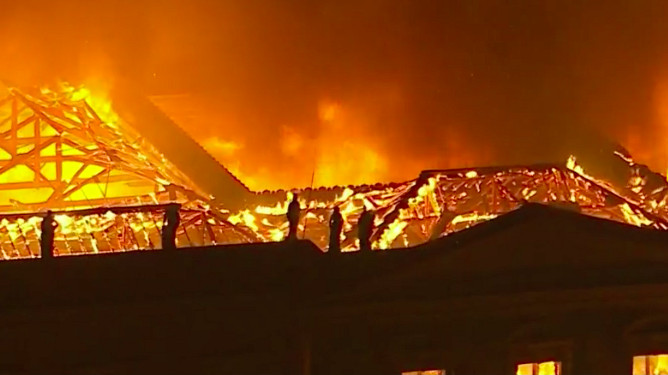 O Corpo de Bombeiros do Rio foi acionado às 19h30. Homens de quatro quartéis trabalham no local, que fica dentro do parque nacional da Quinta da Boa Vista. O prédio tem três andares, é ligado à Universidade Federal do Rio de Janeiro (UFRJ) e o fogo toma de conta de boa parte da construção.