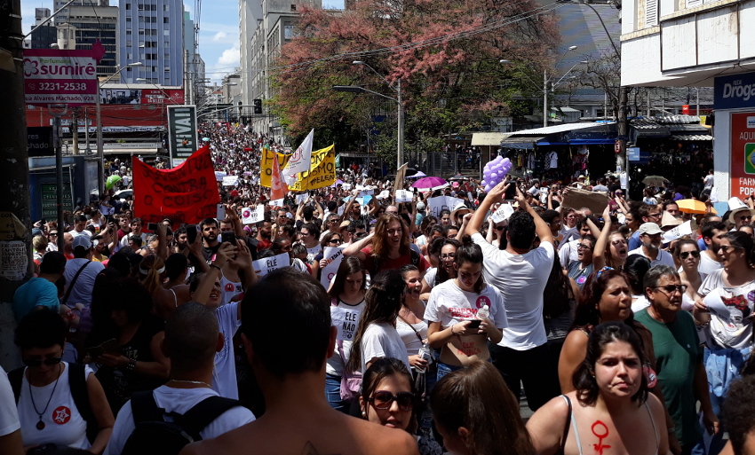 A manifestação, organizada pelas mulheres, dentro da campanha #elenão, contra o candidato que defende ideias semelhantes ao fascismo, nazismo e de total intolerância.