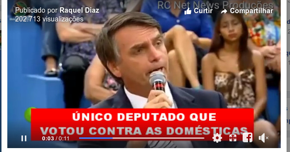 Em programa de televisão, o candidato a presidente Jair Bolsonaro (PSL) diz orgulhoso que foi o único deputado a votar contra as empregadas domésticas.