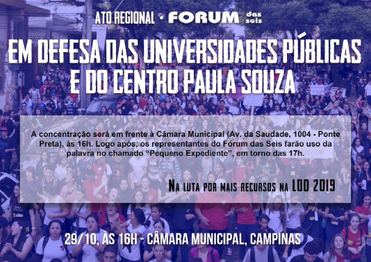 A realização dessas atividades tem por objetivo dar visibilidade à luta do Fórum das Seis(que reúne 6 entidades das universidades paulistas) por mais recursos para as Universidades Estaduais Paulistas e para o Centro Paula Souza,responsável pelas ETECs e FATECs.