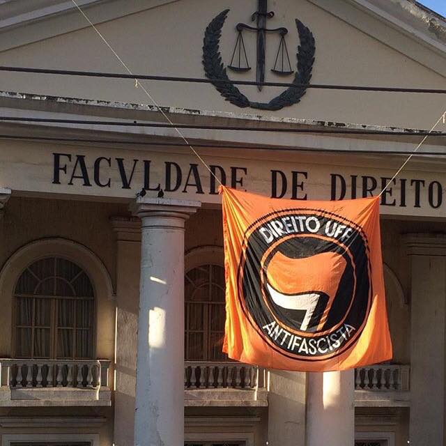 Na terça-feira (23), fiscais do Tribunal Regional Eleitoral (TRE) estiveram na Universidade Federal Fluminense (UFF) para a retirada de uma bandeira com os dizeres “Direito UFF Antifascista”. Eles percorreram as salas, interromperam uma aula que ocorria no auditório e foram até o centro acadêmico para intimidar os jovens presentes.