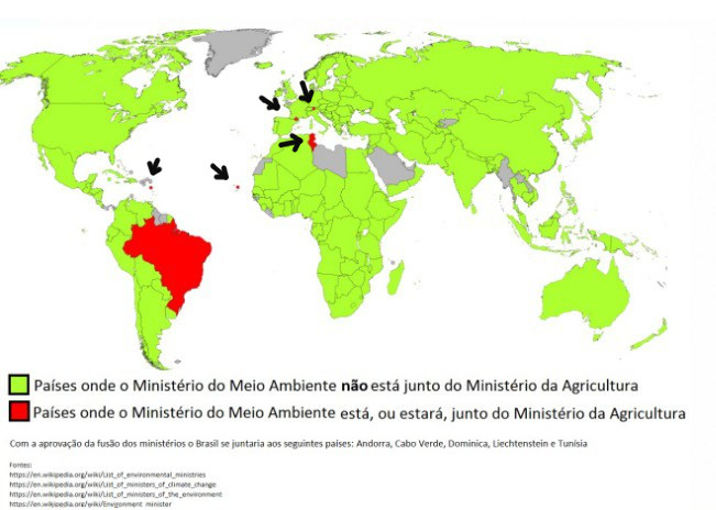 A fusão das pastas do Meio Ambiente e Agricultura num único Ministério, anunciada pelo futuro governo de Jair Bolsonaro (PSL), só existe em cinco países no mundo (do total de 193, segundo a Organização das Nações Unidas – ONU).