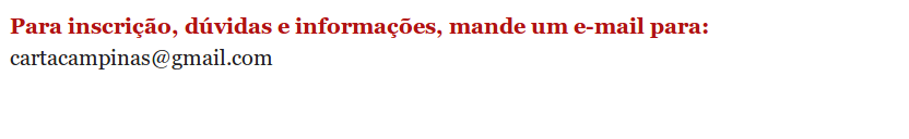 As inscrições para Curso Carta Campinas de Jornalismo e Redação ficam agora com as inscrições abertas permanentemente. Ou seja, você pode nos enviar o e-mail e ver se é possível fazer o curso em qualquer mês do ano.